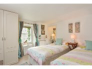 This room is currently being used a s a twin room. A Velux window provides stunning views over the countryside. A fitted hanging clothes rail is provided for hanging clothes. There are two flush wall lights. A night storage heater. The floor is carpeted. Room for free standing furniture.