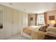 This room is currently being used as a double room. There are dual aspect windows. There is a recessed area with a dressing table and there are also three double door wardrobes and a single door wardrobe which have hanging rail, shelves and drawers, giving ample space for clothes. The ceiling is fitted with three large down-lights. Storage heater. The floor is laid with carpet.